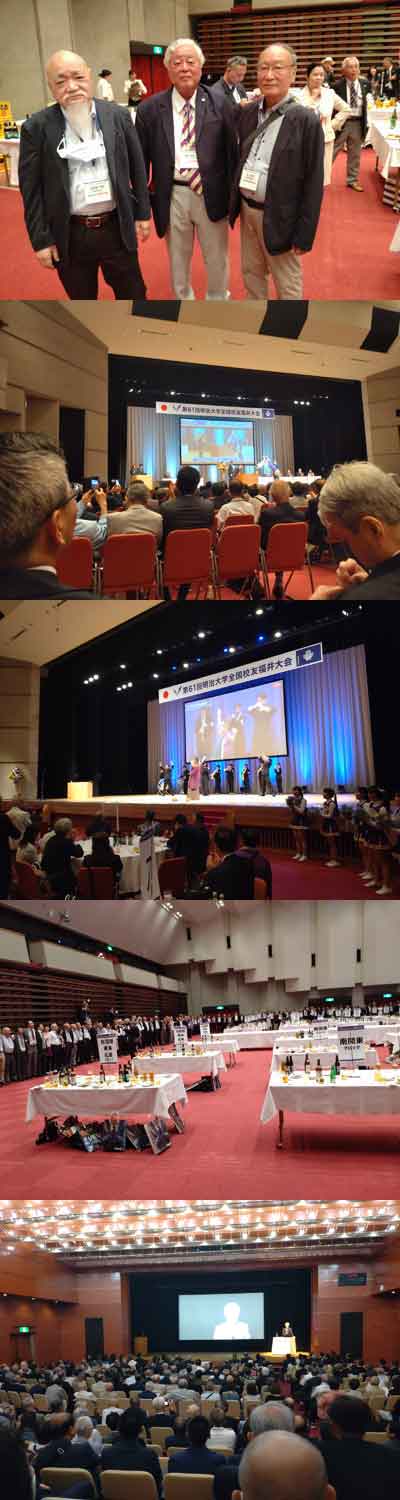 1時間の歓談、全員の1分間スピーチ、獅子の会のLINEの説明(10人増えました。)、記念写真、福島県須賀川から参加の伊藤慈彦君のリーダーで校歌を歌い、「フレフレ明治」「フレフレ獅子の会」は感動しました。