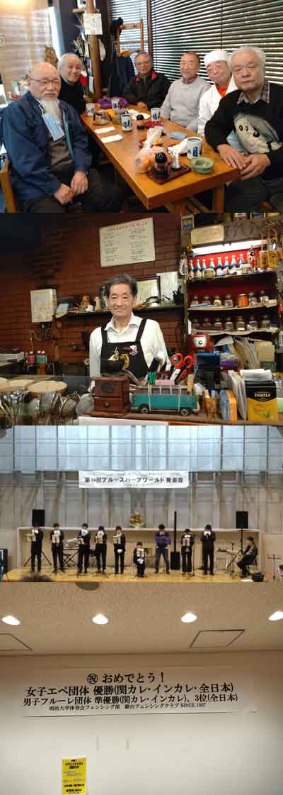 2)14日、輪座君が川口の並木公民館の第16回ブルースハープワールド発表会(ハーモニカ)に出演して、ピンキーとキラーズの「恋の季節」を演奏しました。皆さん、帽子を被り衣装もピンキーでした。