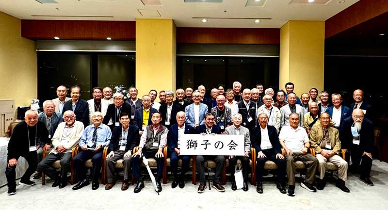 1時間の歓談、全員の1分間スピーチ、獅子の会のLINEの説明(10人増えました。)、記念写真、福島県須賀川から参加の伊藤慈彦君のリーダーで校歌を歌い、「フレフレ明治」「フレフレ獅子の会」は感動しました。